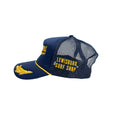 LSS branded West Virginia Captain's hat. This high crown trucker hat features foam panels and visor. It’s paired with a gold cord and special edition embroidered design on the visor and front, as well as Lewisburg Surf Shop logo embroidered on the mesh.