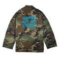 One of a kind vintage military shirt jacket in green camo. Blue LSS logo printed on back, and LSS patches stitched above front pockets. Each jacket is different and sizes may vary. DM or email us for other size/jacket inquiries. Some are distressed and slightly different than the one pictured. They run Large to Extra Large.