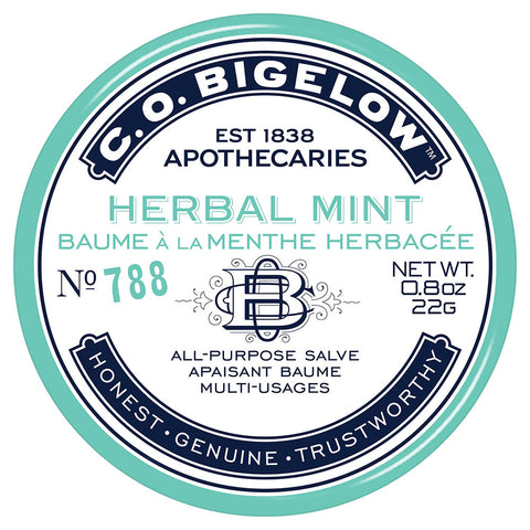 The newest addition to our all-purpose salve collection, C.O. Bigelow's Herbal Mint Salve, cares for lips and beautifies skin. This refreshing blend of cooling peppermint and spearmint with lemon balm and rosemary is paired with natural emollients like Cotton Seed Oil, Lanolin Oil, and Squalane to help prevent dry, irritated skin and lips.
